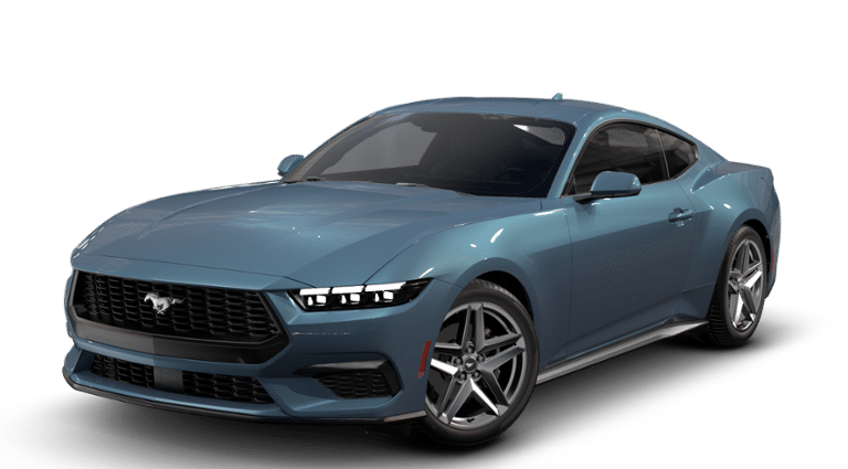 Vapor Blue Metallic 2026 Ford Mustang EcoBoost RWD 10-Speed Automatic EcoBoost 2.3L I4 GTDi DOHC Turbocharged VCT Active Valve Performance Exhaust, SYNC 4, Wheels: 19 x 8.5 Premier Polished Aluminum.